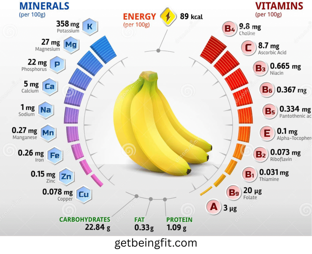 *Based on a 2,000-calorie diet. (Image Suggestion: An infographic chart comparing banana nutrition with apples and oranges. Alt Text: “Banana Nutrition Chart: Calories, Carbs, Fiber, Potassium & More”)